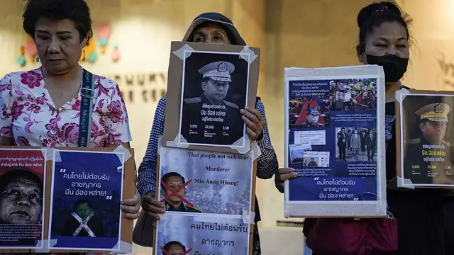 မြန်မာစစ်ခေါင်းဆောင် ဗိုလ်ချုပ်မှုးကြီး မင်းအောင်လှိုင်နဲ့ ထိုင်းကိုလာဖို့ ဖိတ်ခေါ်တဲ့ ထိုင်းအစိုးရကို ကန့်ကွက် ရှုတ်ချတဲ့အကြောင်း ထိုင်းအရပ်ဘက် လူမှုအဖွဲ့အစည်းတွေက ဘန်ကောက်မြို့ မြန်မာသံရုံးရှေ့မှာ ဧပြီ ၅ ရက်က ဆန္ဒပြကြတယ်လို့ ထိုင်းသတင်းဌာနတွေက ရေးသားထားပါတယ်။