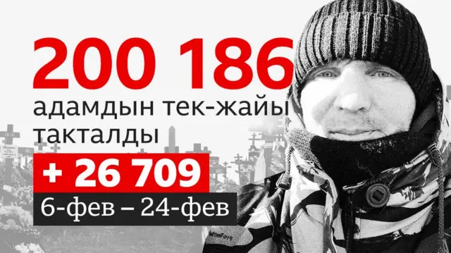 Украинага Орусия бастырып киргенден берки төрт жыл ичинде кеминде 200 186 орус аскер кызматкери каза тапкан. Би-би-си "Медиазона" басылмасы менен бирдикте, ыктыярчылар тобунун жардамы менен ачык булактарга таянып ушундай эсептөөлөрдү келтирет.