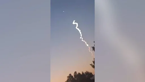 سپس رد موشک به صورت نقطههای کوچک سفید رنگ ابرمانند، تقریباً با فاصلههای منظمی دیده میشوند و بعد دوباره رد سفید ستونمانند پدیدار میشود، پرتابه شعلهور میشود اما با لرزشها و سوسوهای نامنظم.