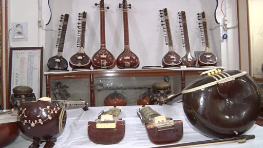 ਇੱਥੇ ਸਾਰੰਗੀ, ਤਾਊਸ, ਸਰੰਦਾ, ਦਿਲਰੁਬਾ, ਸਰਸਵਤੀ ਵੀਣਾ, ਸਿਤਾਰ, ਤਾਨਪੁਰਾ ਅਤੇ ਸਰੋਦ ਵਰਗੇ ਕਈ ਤਾਰਾਂ ਅਤੇ ਲੋਕ ਸਾਜ਼ ਹਨ।