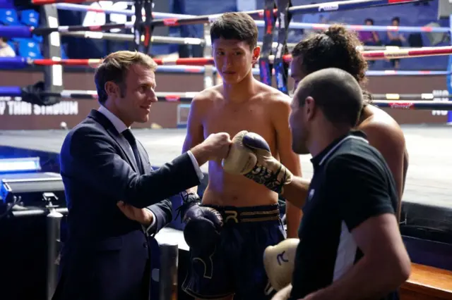 มาครงย้ำในการเดินทางมาเยือนอาเซียนเพื่อเข้าร่วมการประชุม "แชงกรีลา ไดอะล็อก" (Shangri-La Dialogue) ครั้งที่ 22 เวทีนี้เป็นการประชุมสุดยอดด้านความมั่นคงในภูมิภาคเอเชีย-แปซิฟิก ว่า ในขณะที่เอเชียและยุโรปกำลังเผชิญกับภัยคุกคามจากชาติมหาอำนาจที่ปฏิเสธกฎหมายระหว่างประเทศและใช้การบีบบังคับเป็นเครื่องมือ ฝรั่งเศสคือประเทศที่ยึดมั่นในกฎหมายระหว่างประเทศ ไม่เลือกข้างมหาอำนาจใด และสนับสนุนอธิปไตยและความเป็นอิสระของประเทศในภูมิภาคนี้