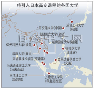 东盟有望在2015年实现经济一体化。“亚洲高级专业人才培养网络”会长石岛表示,“东盟各国都亟需立即可以发挥作用的人才,也非常希望能效仿日本培育自己的产业人才”。为了便于日本企业在当地雇用所需劳动者,日本还计划向修完“高等专科学校”课程的当地学生颁发与日本国内相同的毕业证书。
