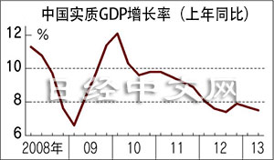 亚洲开发银行此前将中国2013年增长率预期下调至7.7%、2014年下调至7.5%