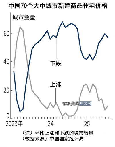 中国国家统计局9月15日公布了8月份70个大中城市新建商品住宅价格动向,价格环比下跌的城市占整体的81%,为57个,比7月减少了3个。