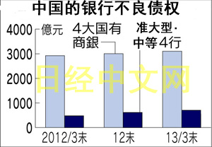 中国的银行不良债权正在增加。在香港上市的8家主要银行的不良债权余额截至3月底达到3802亿元,比1年前增加1成以上。被认为对出口型中小企业贷款较多的准大型和中等银行的不良债权增加更为明显。自上世纪90年代到2000年代曾加剧的不良债权问题作为中国银行经营面临的新风险再次浮出水面。
