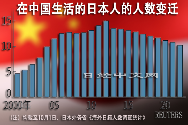 2022年在中国生活的日本人比2021年减少5%,降至10万2066人。顶峰时的2012年曾达到15万人。转折点出现在2012年。最近几年,新冠疫情的蔓延产生影响。而眼下不断的逆风可能让减少的趋势持续……