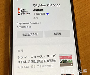 上海市政府将从10月7日开始通过微信公众号“CityNewsService(CNS Japan)”向日本侨民发布日语信息。这将为居住在上海的近4万名日本侨民带来更多便利……