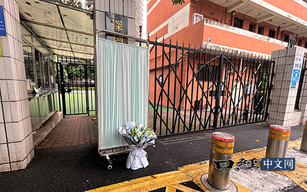 | 遇袭身亡男童就读的深圳的日本人学校门前仍有人前来献花(9月24日,广东深圳) |