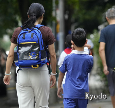 | 在日本男童被刺死事件现场周边的孩童和家长(深圳,9月。Kyodo) |