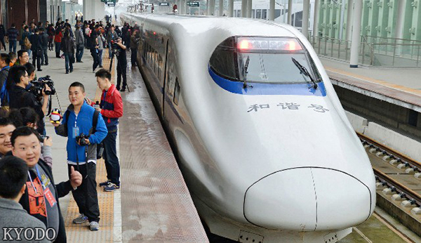 | 停在四川峨眉山站的高铁(kyodo) |