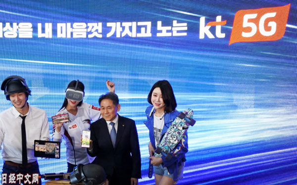 | 宣传新一代通信标准“5G”的韩国KT的相关人士(2019年4月2日,首尔) |