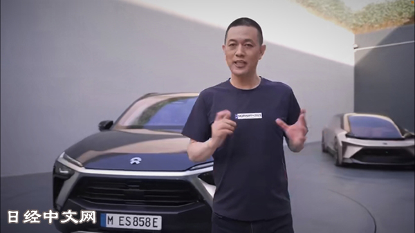 | 宣传自身纯电动汽车吸引力的蔚来汽车CEO李斌(5月,图片源自在线发布会的视频) |