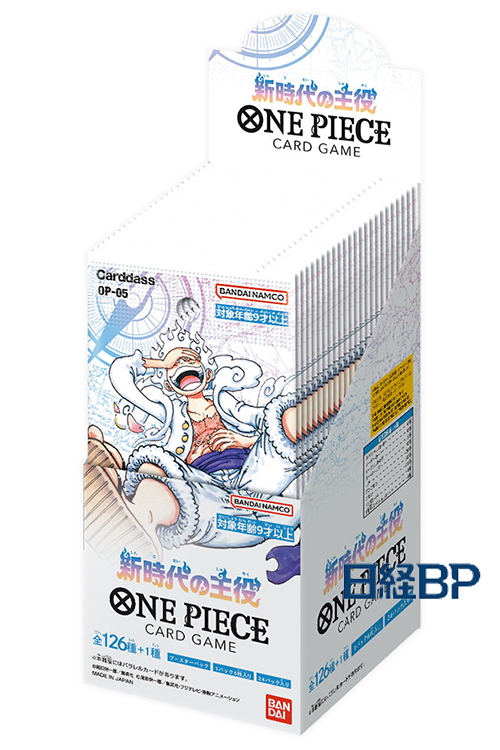 可体验《航海王》世界观的集换式卡牌游戏《ONE PIECE CARD GAME》于2022年7月发售,2023年8月迎来了1周年。支持英语、日语、简体中文,在香港、泰国、台湾、新加坡、印度尼西亚、菲律宾、马来西亚、中国大陆、北美、欧洲、澳大利亚、中南美、日本等国家和地区上线。上市仅1年,全球出货量就突破了10亿张。2024年3月将举办决出世界第一的“Championship 2023年 World Final”。图片为《ONE PIECE CARD GAME 新时代的主角》(万代/220日元/共127种)。