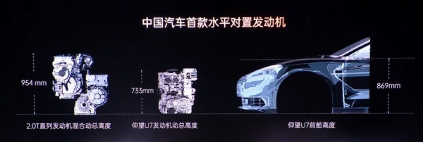 仰望品牌的新款轿车“U7” 在插电式混合动力汽车(PHEV)上采用水平对置发动机。(图片来自比亚迪) |