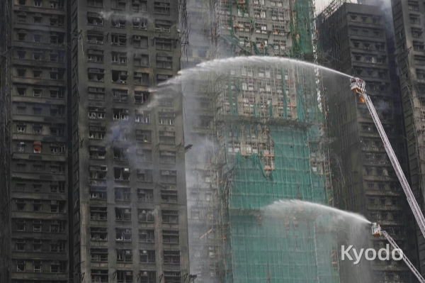香港高层住宅救火现场(11月27日,香港,Kyodo)
