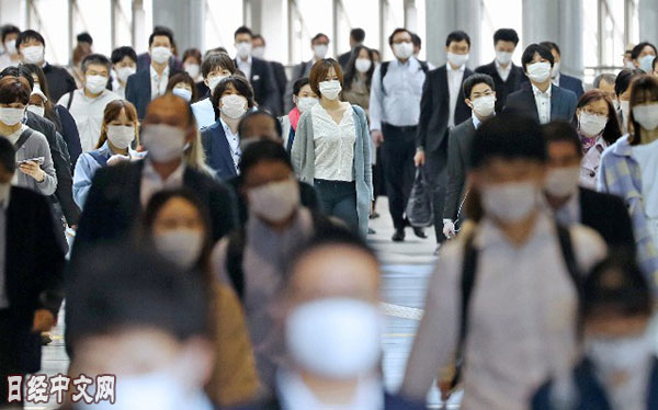 | 戴着口罩去上班的人们(5月22日,东京) |