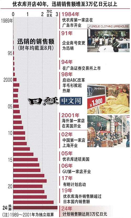 1987年,迅销迅速从通过批发采购厂商生产的服装的传统业务模式转变为从商品策划到销售的一贯制产销(SPA)模式。如今,该公司在全球经营着3500家店铺,总市值达到12.7万亿日元。