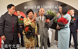 日经中文网特约撰稿人 张石:7月12日,在东京新大谷饭店举行了纪念孙中山诞辰150周年论坛“东京中山论坛”。孙中山先生孙女、美国孙中山和平教育基金会主席孙穗芳也来出席论坛,在此次论坛上,孙穗芳见到了孙中山与其日本妻子大月薰所生的女儿宫川富美子的两个儿子,也就是孙中山的日本外孙宫川东一和宫川弘。这是孙中山留在中国的后代和留在日本的后代的首次相认。