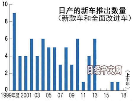 在重视中国和东南亚等新兴市场国家战略的同时,在日本国内,日产2年以上没有推出新款车和全面改进的汽车。最近,自2018年3月在休旅车“赛瑞纳(Serena)”上配备“e-power”自主混合动力技术之后,没有突出的行动。2018年不计划上市全面改进的新车。