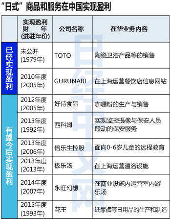 在中国拓展业务的日本企业陆续在业绩方面迎来收获期。食品等与日常生活息息相关的日本商品和服务在中国市场被认可。日本好侍食品旗下的在华业务将于2012年度首次实现盈利,而西科姆将在2013年度首次实现盈利。中日紧张关系正在加剧,但利用独创性和时间打造的高品质形象对“日式”商品和服务的普及构成了支撑。