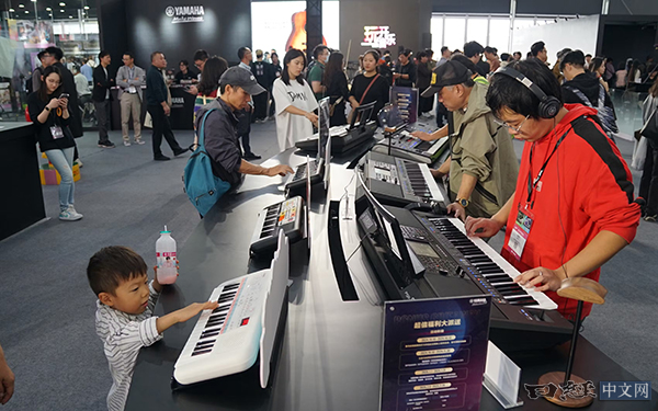 此次展会,雅马哈的展出面积扩大到上年的三倍,达到约2000平方米,展示了钢琴、吉他、打击乐器、电子乐器等产品。