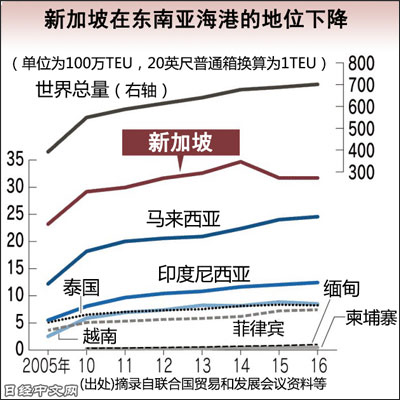 不过,新加坡目前一家独大的局面将出现动摇。新加坡港2016年的集装箱吞吐量虽然仅次于上海,排名全球第2。但与2010年相比仅增长8.6%,远远低于全球27.6%的整体涨幅。