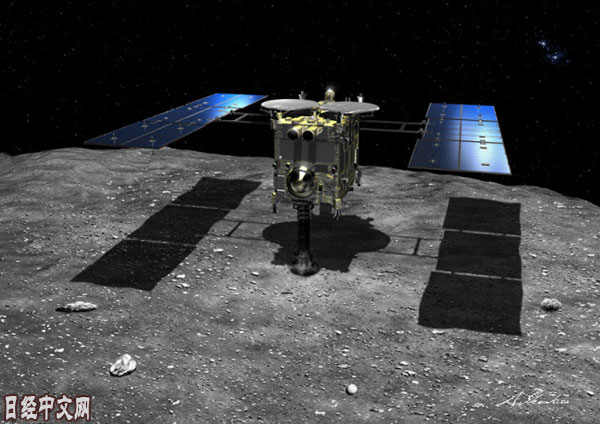 | 隼鸟2号着陆“龙宫”的构想图(JAXA提供) |