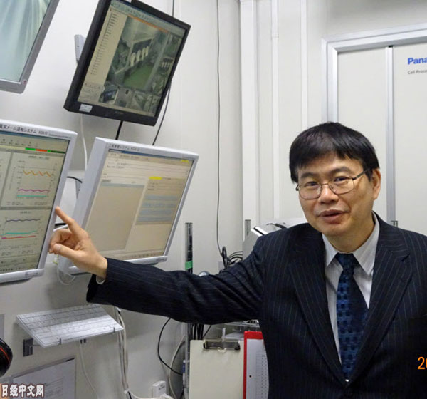 | 冈野教授身后的门内是庆应大学的细胞处理中心,内部情况通过显示屏监控 |