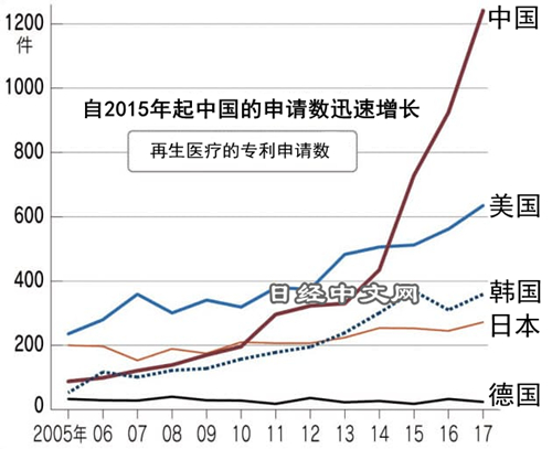 如果从专利数量来看,再生医疗的中心地域并非美国,而是中国。