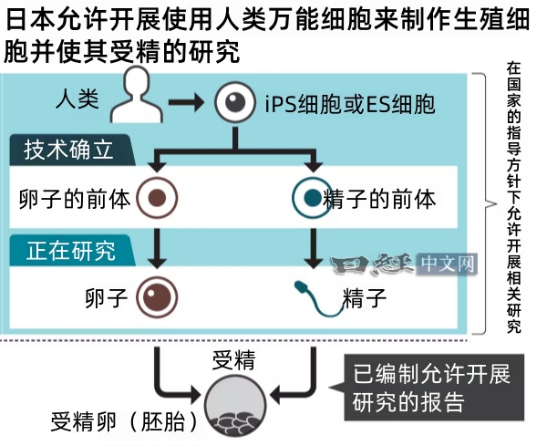7月24日,日本内阁府的生命伦理专门调查会达成基本共识,允许使用人类iPS细胞来制作被视为“生命之源”的受精卵(胚胎)。培养期限定为14天以内。在遵守一定规则的前提下允许进行相关研究,这将有助于查明不孕症及遗传性疾病的病因等。