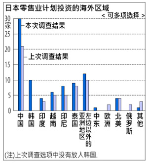 | 日本零售业计划投资的海外区域对照表 |