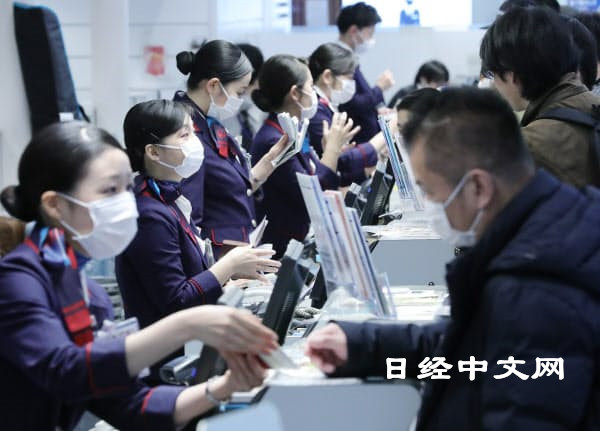 | 羽田机场里日本航空的服务人员戴上口罩(1月27日) |