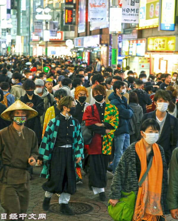 | 《鬼灭》也成为2020年日本万圣节巡游上的流行造型 |