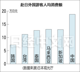 据日本观光厅称,泰国和马来西亚赴日游客的消费额约为13万日元(约合人民币8454元),比游客人数居首的韩国高出8成。日本政府提出的增长战略计划把外国游客的年消费额从2012年的1.086万亿日元(约合人民币706亿元),提高到2030年的4.7万亿日元(约合人民币3057亿元)。而招揽消费力强劲的东南亚游客是实现计划不可或缺的环节之一。