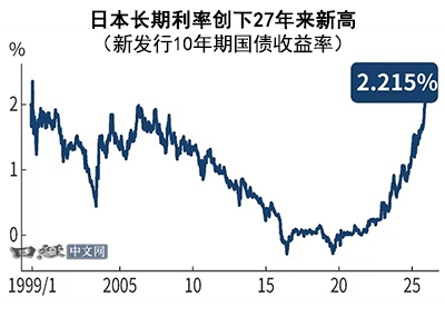 日本长期利率一度升至2.215%,创27年来新高