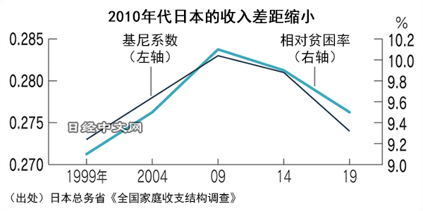 从数字越接近1、表示收入差距越严重的基尼系数来看,日本也小于美英。虽然也有观点认为由于“安倍经济学”,日本的收入差距出现扩大,但2010年代有了小幅改善。