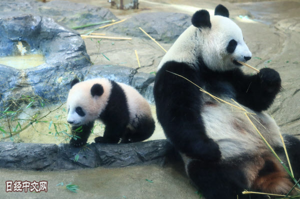 | 香香和母亲真真(右)(12月19日上午,东京上野动物园) |