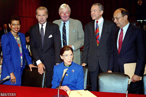 | 议员时代的乔·拜登(左2,1993年7月,Reuters) |