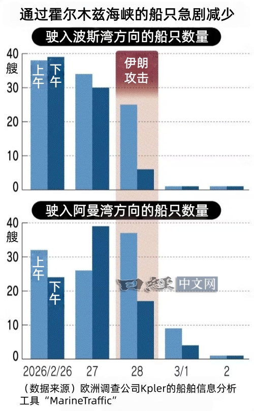 2月28日,美国和以色列对伊朗发动先发制人的攻击,杀死伊朗最高领袖哈梅内伊。对此进行反击的伊朗向船只下达了禁止通过霍尔木兹海峡的通知,已有很多船只停靠在海峡周边,事实上已经陷入了封锁状态。