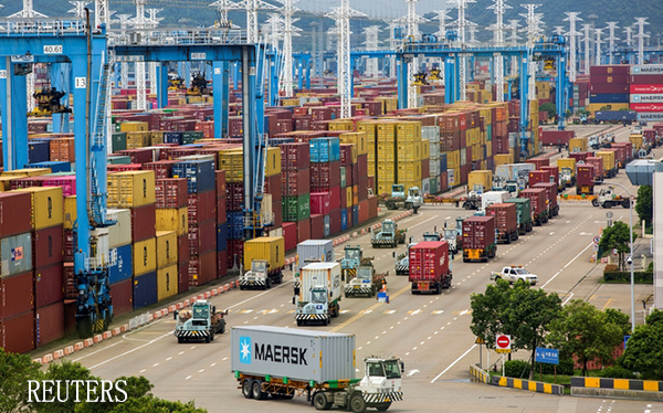 | 强劲的出口对人民币起到支撑作用(浙江宁波舟山港,REUTERS) |