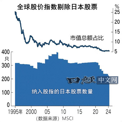 总市值按美元来看也减少。据瑞穗证券的首席量化分析师永吉勇人推测,此次日本股票的总市值在ACWI中的占比下降了0.054个百分点至5.19%。