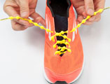 鞋带每1厘米间隔都带有突起物,但一拉就会伸长,松开就会恢复。在进行脚着地和跳跃等动作时,能时常保持穿着合脚……