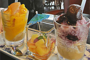 淋上了芒果和浆果两杯刨冰和一杯用葡萄酒烹煮的水果被称为“罗马风味”,再佐以白豆沙或红豆沙又添加了日式风情。售价……