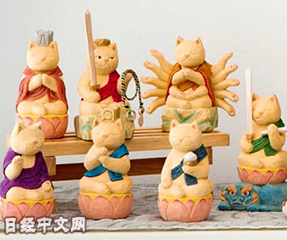 日本专卖开运产品的网站“魂振屋”将发售一款名为“猫佛陀 十二生肖守护本尊”的猫佛像。分为千手观音、不动明王、如来佛祖等8种守护佛像。全都是猫咪心平气和坐着的样子……