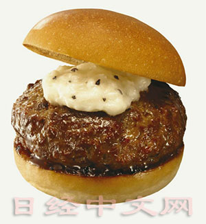 | 日本乐天利将推出的“黑毛和牛排汉堡(双层松露沙司)” |
