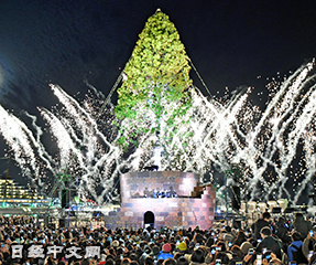 在日本神户港的美利坚公园(Meriken Park)矗立着一棵高约30米的巨型圣诞树,12月2日,这棵树点亮了彩灯,让来访的众多参观者欣赏到夜空中绚烂的灯火……