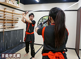 左手拇指轻推刀柄,右脚向前左脚在后,右手顺势拔刀。东京涩谷有家名为“忍者茶房KUNOICHI”的店铺,只需8000日元(约合人民币471.1元)就有专业忍者教你忍术……