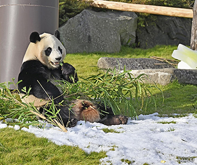 在日本和歌山县的“冒险大世界”,4岁的雌性大熊猫“枫浜”收到了把竹叶摆成圣诞树形状的礼物。“枫浜”于2020年11月出生,是第17只在冒险大世界诞生的大熊猫宝宝……