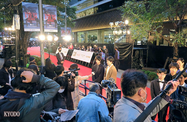 | 在第35届东京国际电影节的红毯上接受采访的相关人员们(10月24日东京都千代田区,KYODO) |
