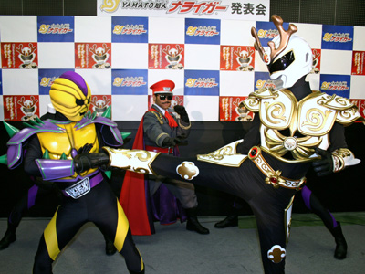 该照片是诞生于奈良县的“大和超人Naraiger”。头上长有奈良公园最有代表性的鹿角,是一位与破坏奈良自然环境的邪恶组织战斗的英雄。 |